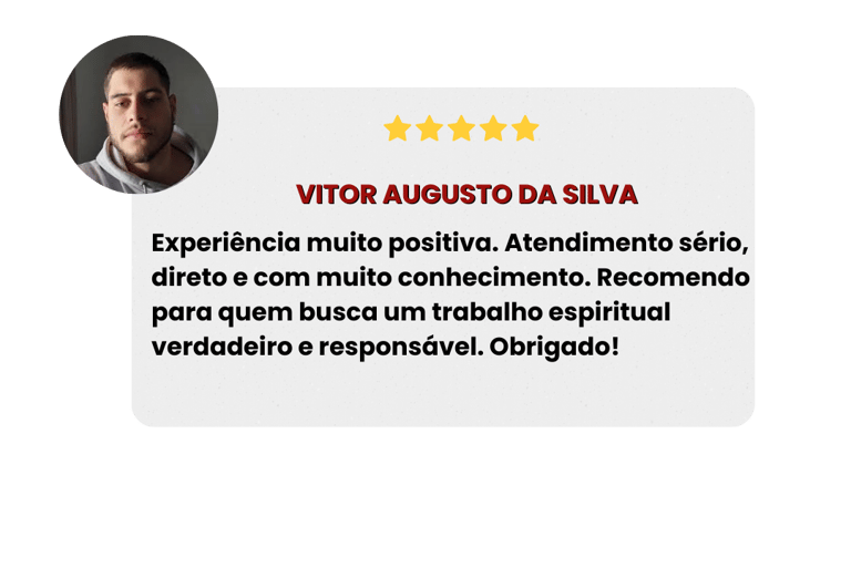 Todo ritual é realizado com firmezas corretas, elementos adequados e acompanhamento, mantendo sigilo absoluto e seriedade em cada etapa do processo. Aqui, a espiritualidade é tratada como algo sagrado, conduzida com verdade, ética e compromisso com resultados reais.